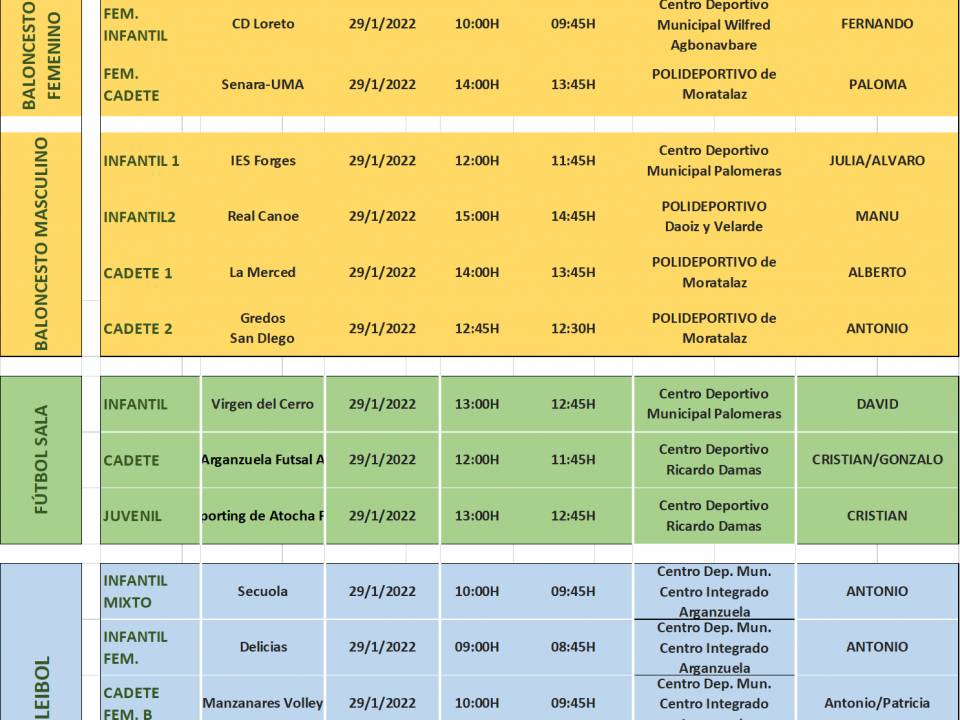 Calendario jornada 29/01/22
