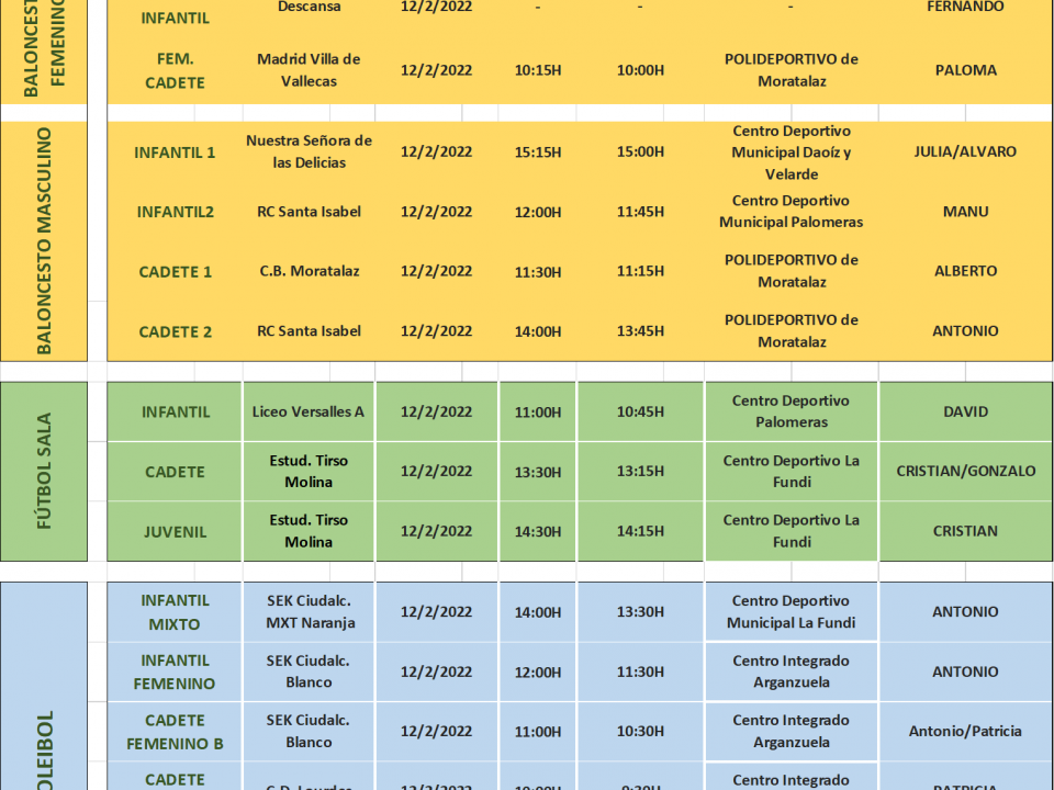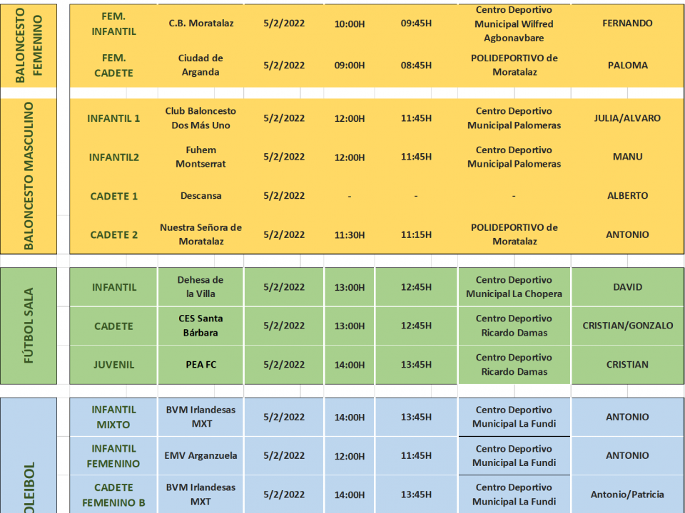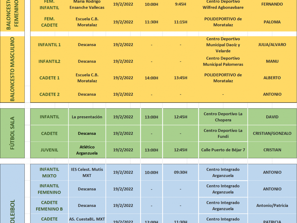 Información de la próxima jornada del sábado 19/02. Sigamos disfrutando de los partidos con deportividad.
